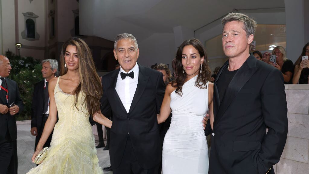 The duo was joined on the carpet by Pitt's co-star and fellow Wolfs producer George Clooney and his wife, international human rights lawyer Amal Clooney.
