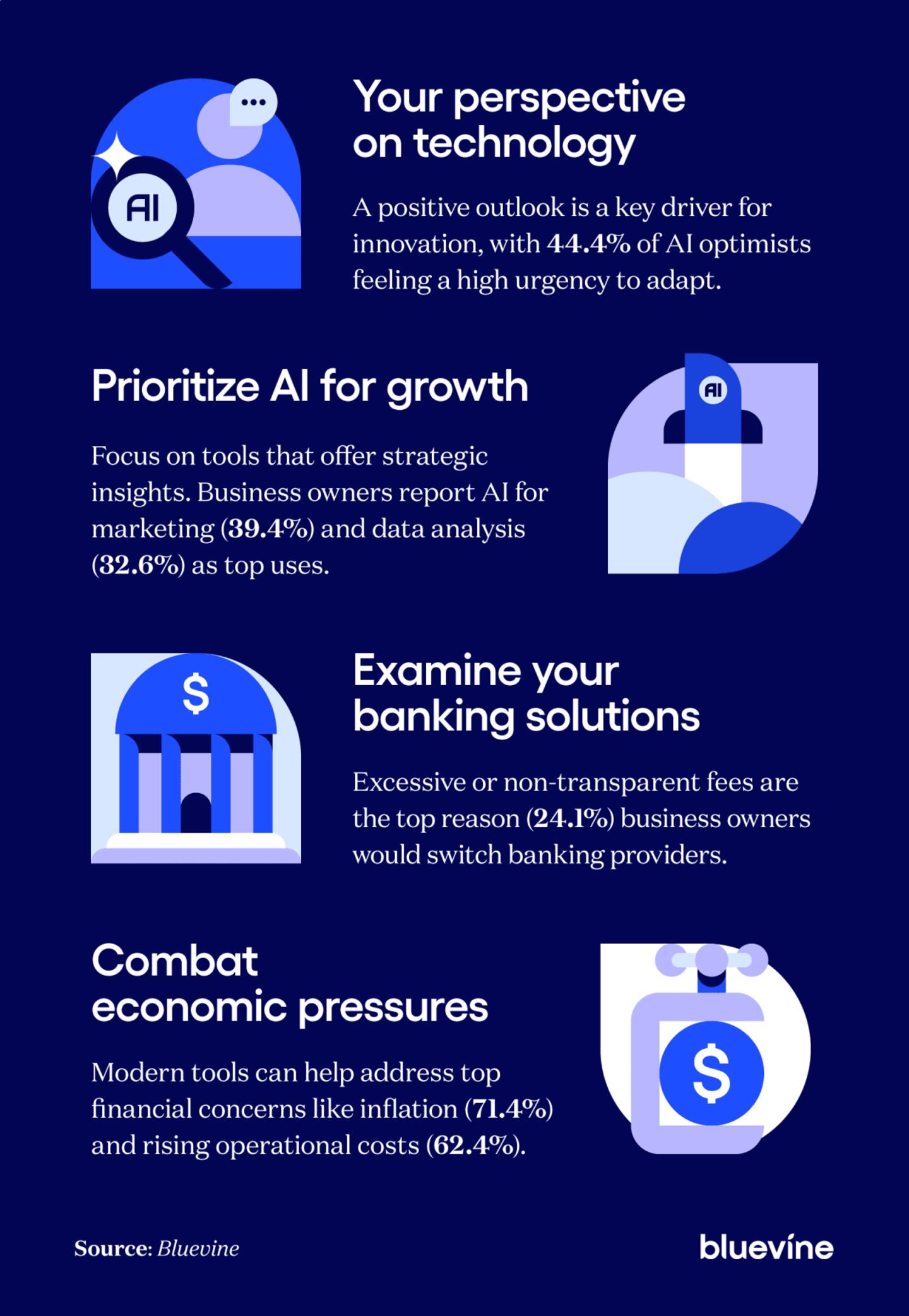 To better understand how entrepreneurs are navigating this shift, Bluevine surveyed over 760 small business owners across the U.S. These insights can help you make more strategic decisions, ensuring your business survives and thrives in today's economy.
