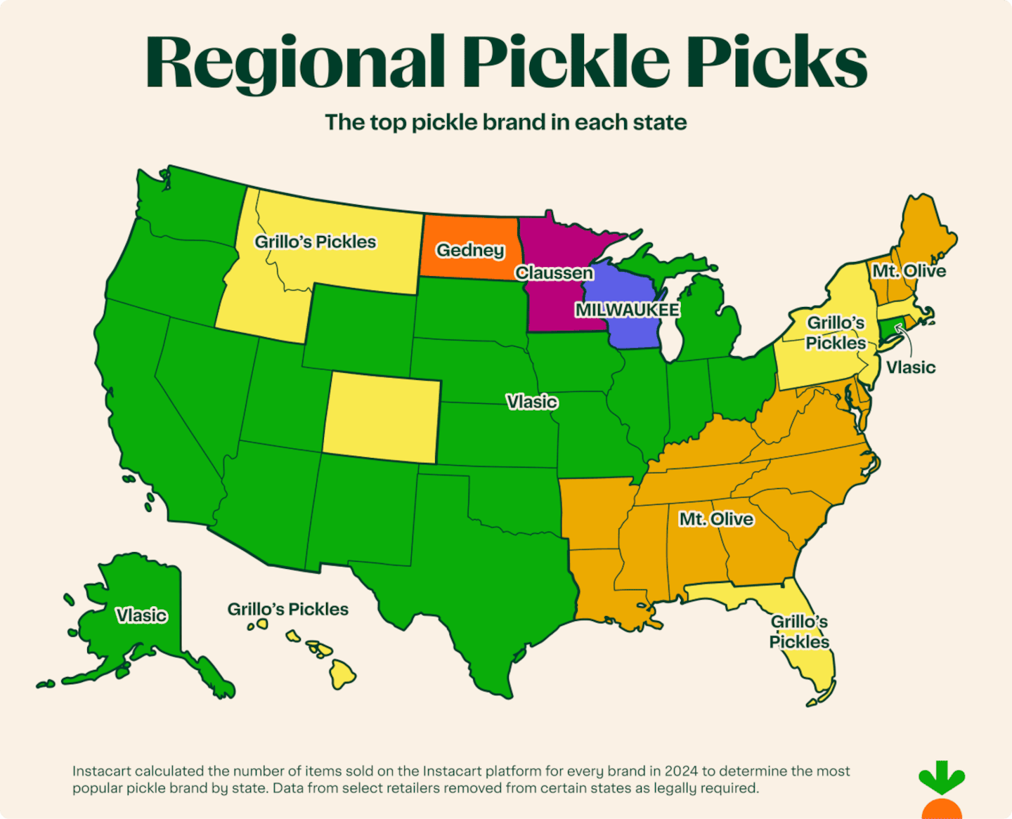 Pickle passion runs deep — and varies by location. Instacart data shows that your favorite pickle brand might say a lot about where you live: