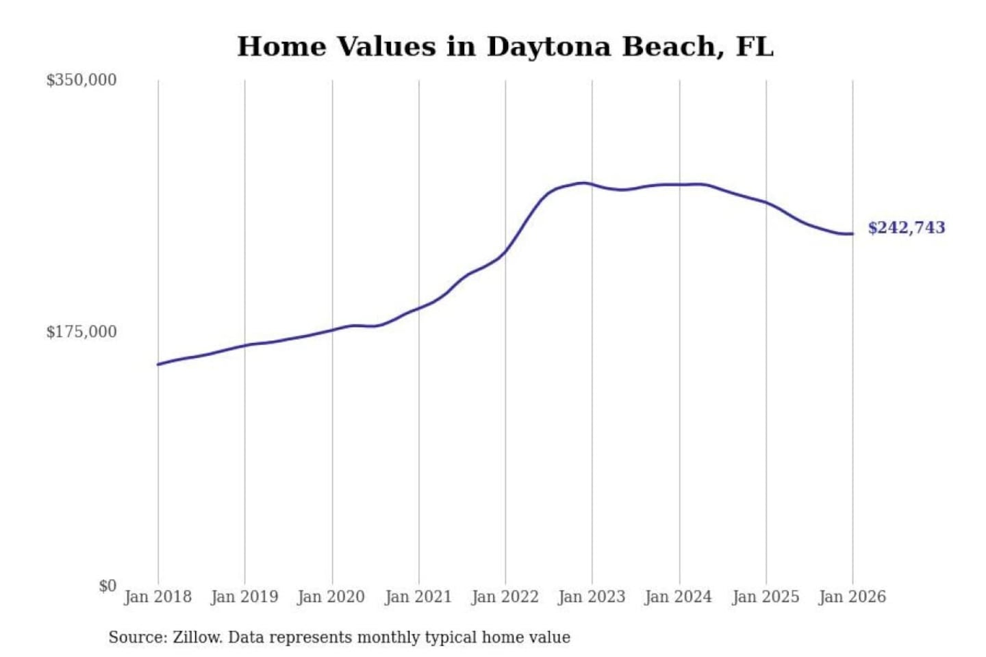 Stacker compiled a list of cities with the fastest growing home prices in the Deltona-Daytona Beach-Ormond Beach, FL metro using data from Zillow. (4 PM production // Shutterstock/4 PM production // Shutterstock)