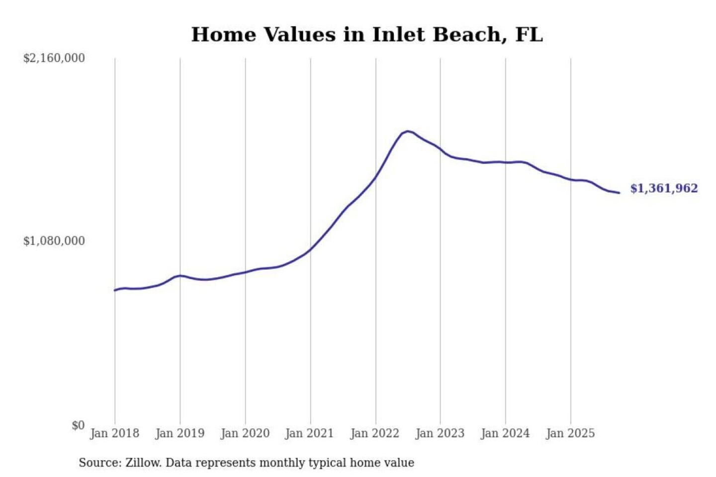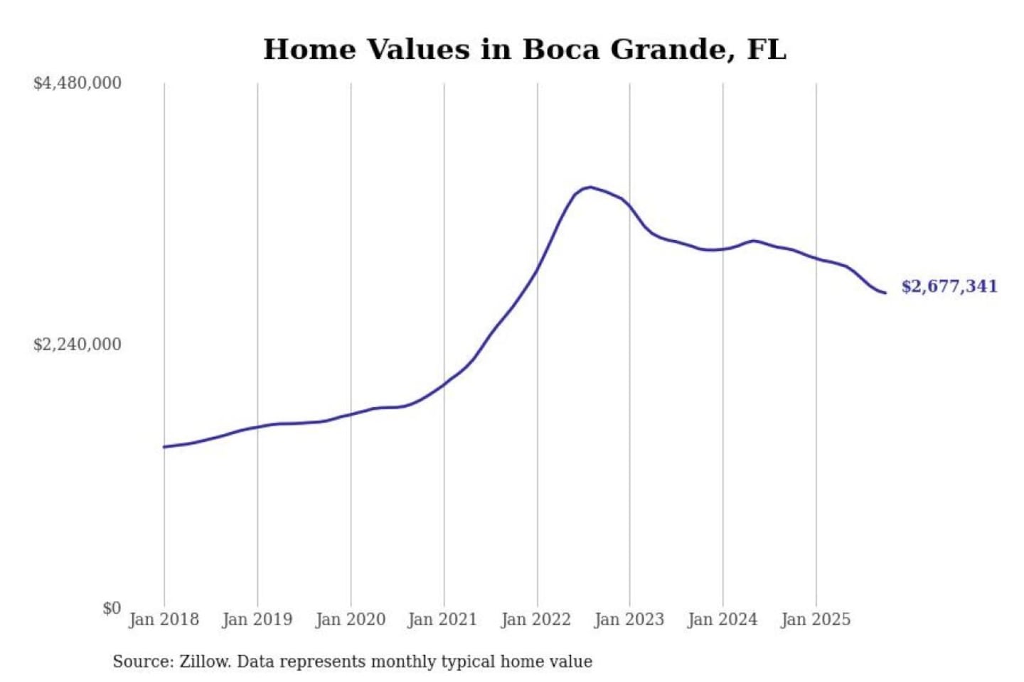 Stacker compiled a list of cities with the most expensive homes in Florida using data from Zillow. Cities are ranked by the Zillow Home Values Index for all homes as of October 2025. The charts in this story were created automatically using Matplotlib.
