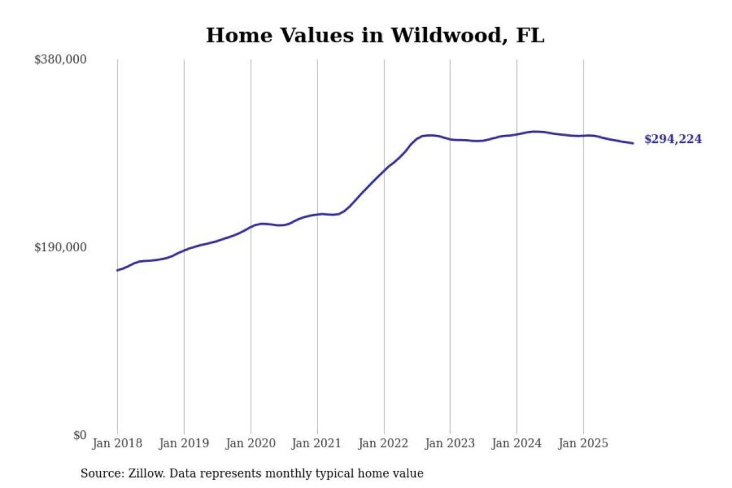 Stacker compiled a list of cities with the most expensive homes in the The Villages metro area using data from Zillow. Charts show the monthly typical home value since January 2018. All 8 cities and towns with data available were included in the list.