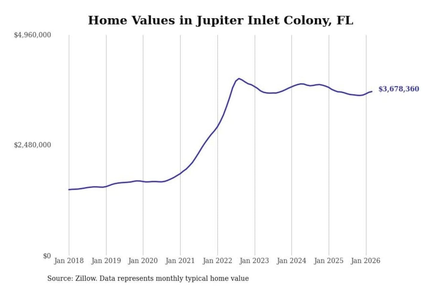 - Typical home value: $3,678,360