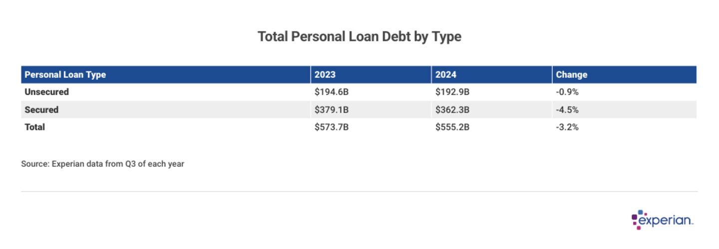 Home equity lines of credit (HELOCs) may be part of the reason for the decline in personal loan debt. HELOC balances grew by 9.7% from 2023 to 2024, as home equity among homeowners, both with and without other debts or renovations to finance, finally began to tap some of the collective $30 trillion in real estate value they own.
