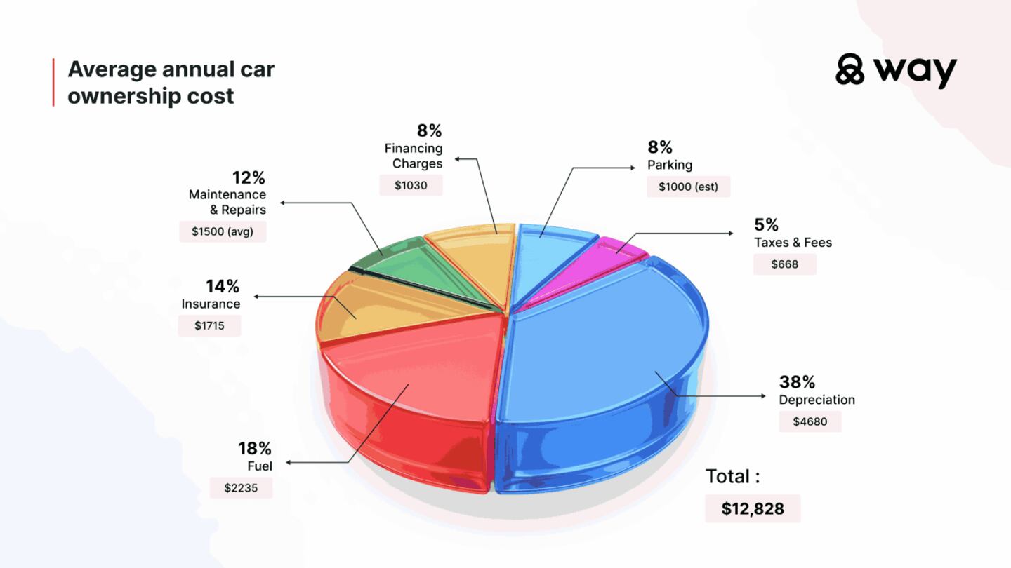 Here is a detailed breakdown of the true cost of car ownership in the USA based on internal research by the Way team. It highlights key aspects that can help you plan your budget and savings accordingly.