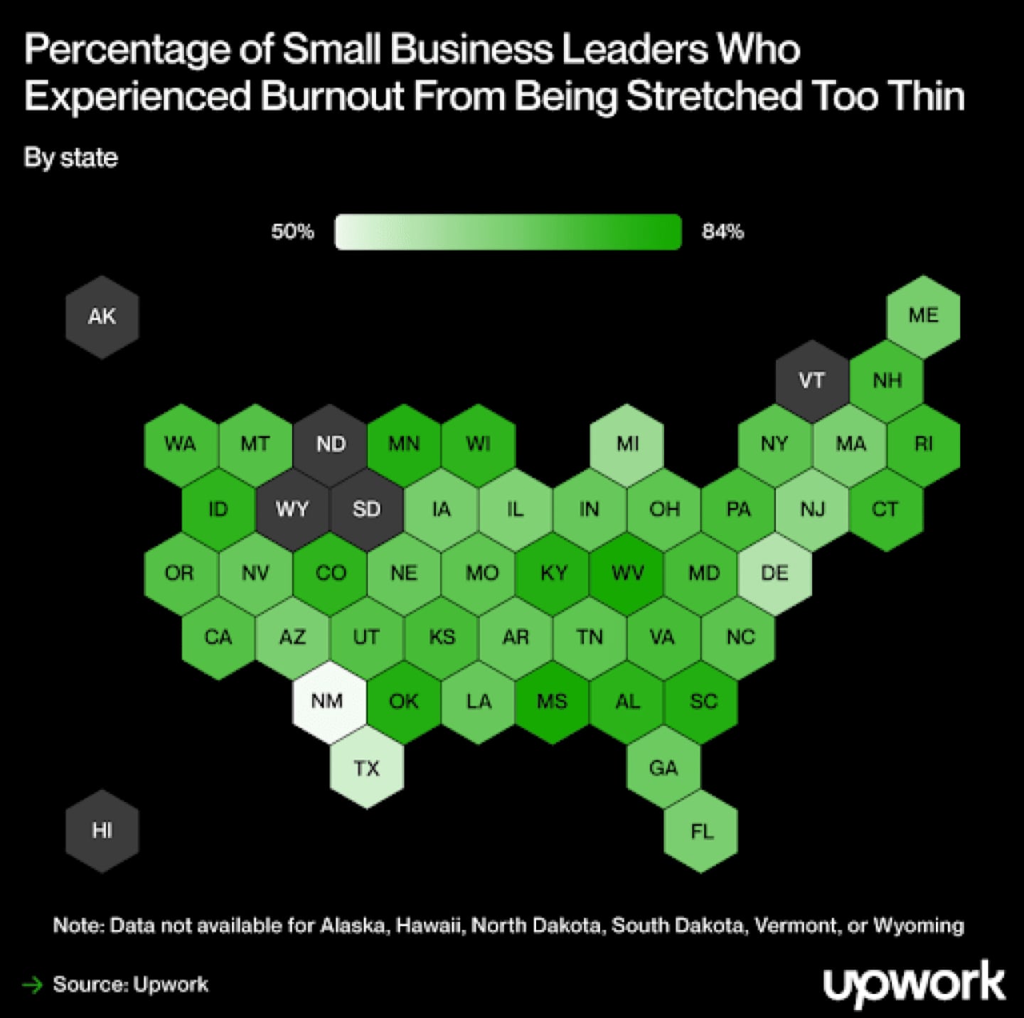 About 69% of SMB leaders in Florida in Upwork's report said that tasks outside their core responsibilities take up time they could be spending on more strategic aspects of the business, and 58% believe that delegating more would help them achieve better results. Fully 79% knew just which tasks they would offload first if they could.