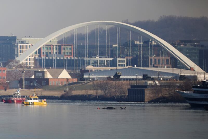 Emergency Crews Respond To Aircraft Crash Near Reagan National Airport ARLINGTON, VIRGINIA - JANUARY 30: Emergency response units conduct search and rescue operation at the crash site of the American Airlines plane on the Potomac River after the plane crashed on approach to Reagan National Airport on January 30, 2025 in Arlington, Virginia. The American Airlines flight from Wichita, Kansas collided with a military helicopter while approaching Ronald Reagan National Airport. Dozens of people are feared to have died in the midair collision. (Photo by Andrew Harnik/Getty Images) (Andrew Harnik/Getty Images)