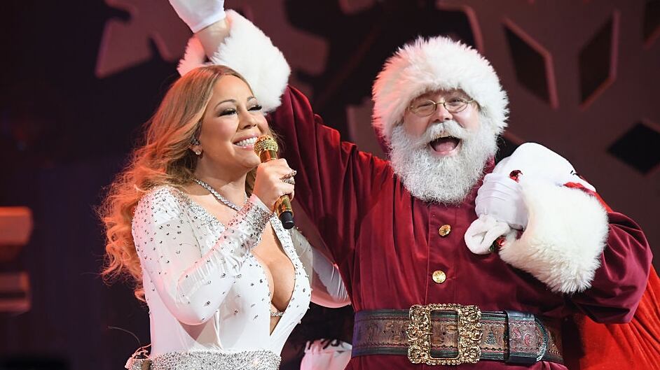 This year she steps out of a giant, shattered ice cube and starts belting out the first bars of her ubiquitous 1994 standard “All I Want for Christmas is You.”