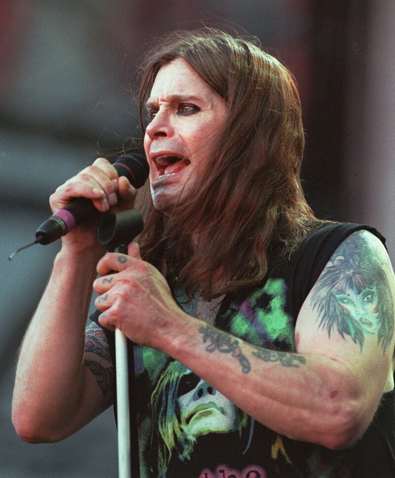 Photos: Ozzy Osbourne through the years 1997: In this June 15, 1997, file photo, Ozzy Osbourne performs with Black Sabbath during the Ozzfest concert at the Meadowlands in East Rutherford, N.J. (AP Photo/Bill Kostroun, file)