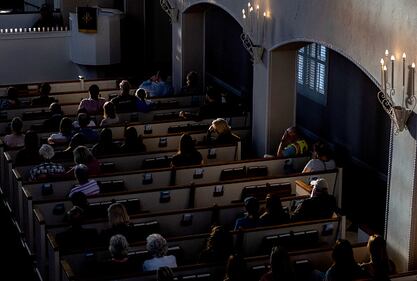 The Covenant School NASHVILLE, TN - MARCH 27: People attend a vigil at Woodmont Christian for those who were killed in a mass shooting at The Covenant School on March 27, 2023 in Nashville, Tennessee. According to initial reports, three students and three adults were killed by the shooter, a 28-year-old woman. The shooter was killed by police responding to the scene. (Photo by Seth Herald/Getty Images) (SETH HERALD/Getty Images)